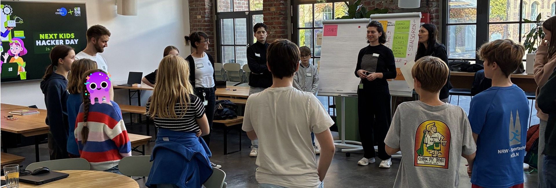 Vor kurzem haben wir unseren Marktplatz zu einem Labor für Nachwuchsentwickler_innen umfunktioniert: Beim allerersten Next Kids Hacker Day haben 16 Kinder im Alter von 10 bis 14 Jahren unter Anleitung unserer Softwareentwicklerinnen die Welt des Programmierens entdeckt und erste Coding-Challenges gemeistert. Die Kolleg_innen haben den Workshop kollegial und mit viel Hands-on-Mentalität umgesetzt.